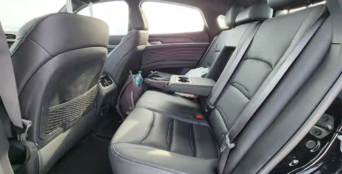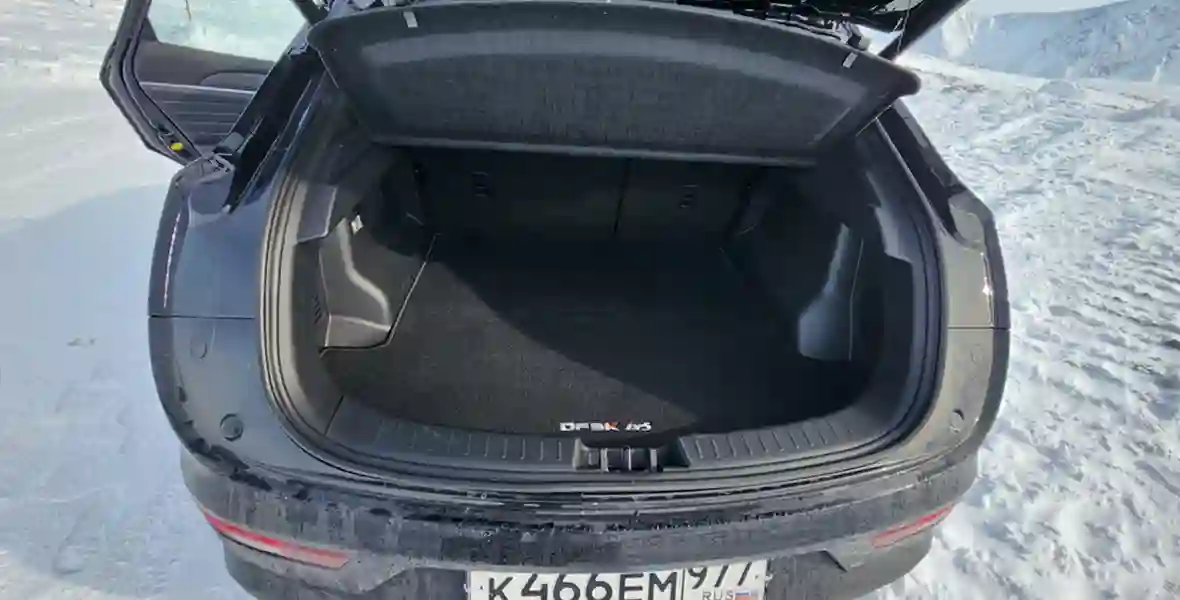 Несмотря на такой крупный багажник, задний ряд получился на удивление просторным. Колесная база у DFSK ix5 всего на два сантиметра меньше, чем у 7-местного ix7 (2790 мм против 2810 мм). Поэтому наличие жестких пластиковых накладок на спинках передних кресел никак не смущает. Свободного пространства перед коленями при посадке «сам за собой» (рост 186 см) остается много. Пол ровный, места для ступней даже в крупной зимней обуви остается с запасом. Над головой тоже свободно. Из дополнительных удобств: один разъем USB-A, розетка на 12V, ниша для телефона и раздельные дефлекторы вентиляции.