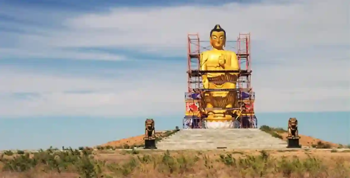 Прибываю в городок Лагань, к воротам хурула, буддийского храма. Смотрители торопятся навстречу — оказалось, ждут некоего Чингиза освящать его автомобиль. Рядом огроменная статуя Будды. И вспоминается знаменитая притча.