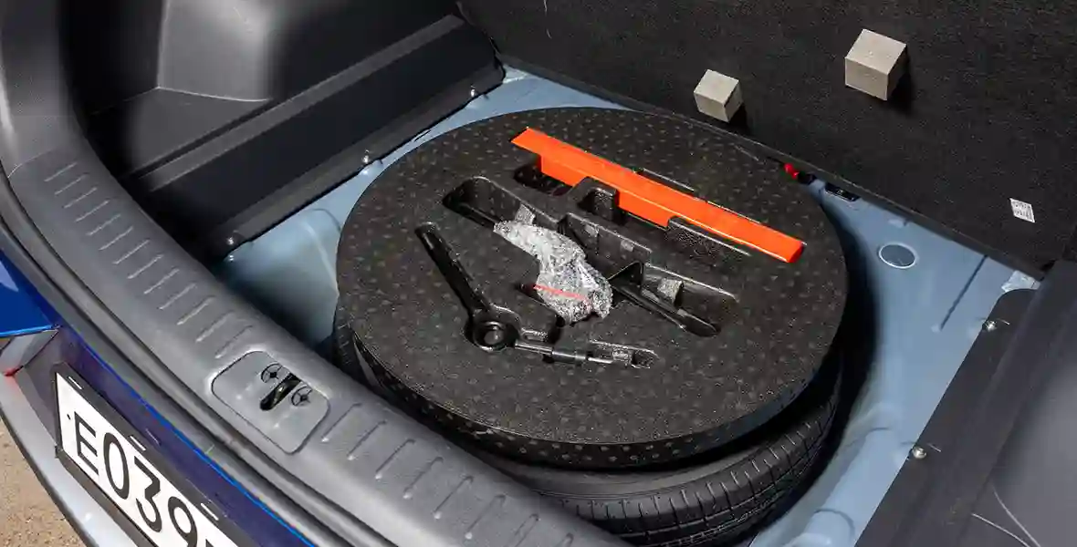 Спинка второго ряда складывается, скажем так, по старинке — вытягивается подушка кресла, наклоняется и на ее место опускается спинка. Таким образом образуется ровный пол, и сегодня мало кто предлагает подобную схему. За диваном — жесткая полка багажного отделения; у того же Haval H3, например, она идет за доплату. Чем ещё хороша полка? Она как бы подсекает лишний звук из грузового отделения. Багажник не самый ёмкий, всего 318 литров. Но это до полки, а все «китайцы», как известно, меряют до подголовников заднего дивана. Если прибегнуть к подобному измерению, можно говорить о 380-390 литрах полезного объёма. В общем, стандартный для сегмента литраж. Под полом спрятаны докатка и органайзер. Задняя дверь открывается без помощи электричества.